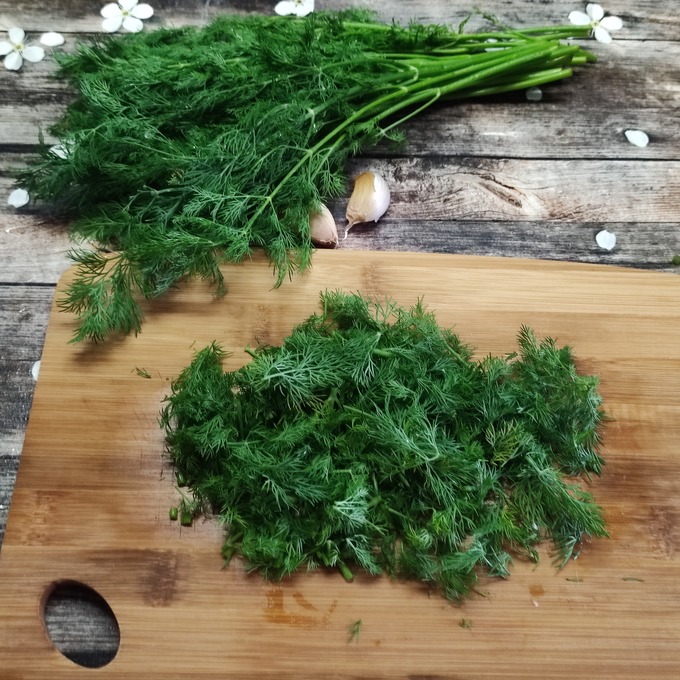 - Укроп моем, просушиваем и нарезаем не слишком мелко.